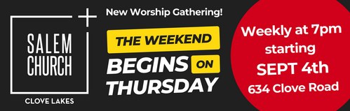 Sometimes it can be tough to get up and out on a Sunday morning to make it to church. Maybe family schedules get tricky. Maybe you work on Sundays. We get it! But we've found something so incredible we don't want you to miss. That's why we are starting our new Thursday Night Worship Gathering, beginning on September 4th at 7pm. At Salem Church, the weekend begins on Thursday and we can't wait to see you there!